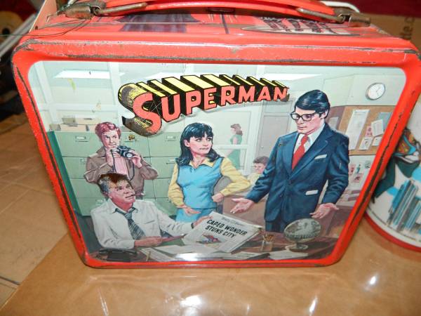 SELLING THIS AWESOME VINTAGE SUPERMAN METAL LUNCHBOX AND THERMOS. IT IS FROM 1978 IN GOOD SHAPE. $69.00 CALL OR TEXT (fine fine nine-nine two zero-one seven three eight)