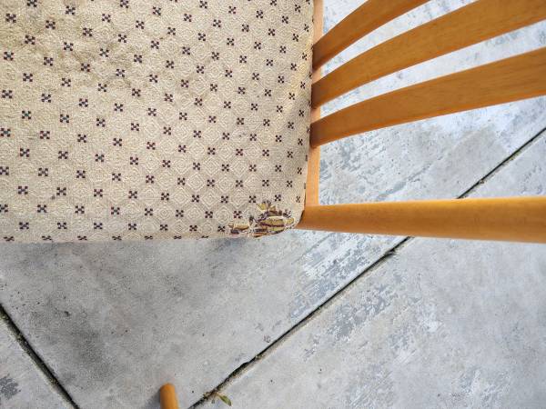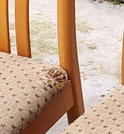 Solid wood dining table with 4 chairs. Has cushioned seats. Cheap price for a well built, solid table. Asking 60 or best offer.